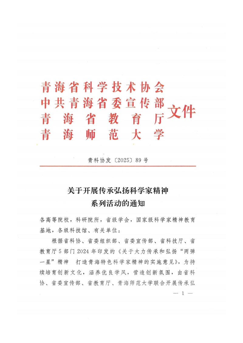 文件下载:青科协发〔2025〕89号 关于开展传承弘扬科学家精神系列活动的通知(联合发文).pdf