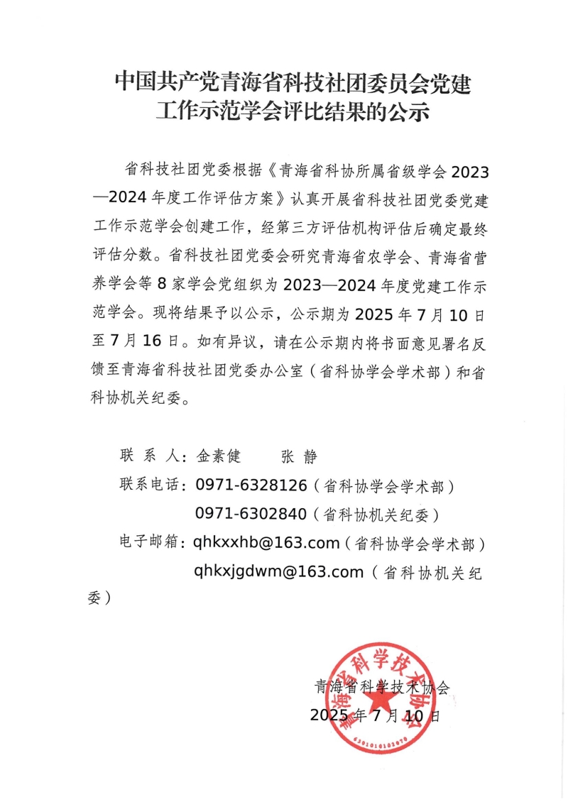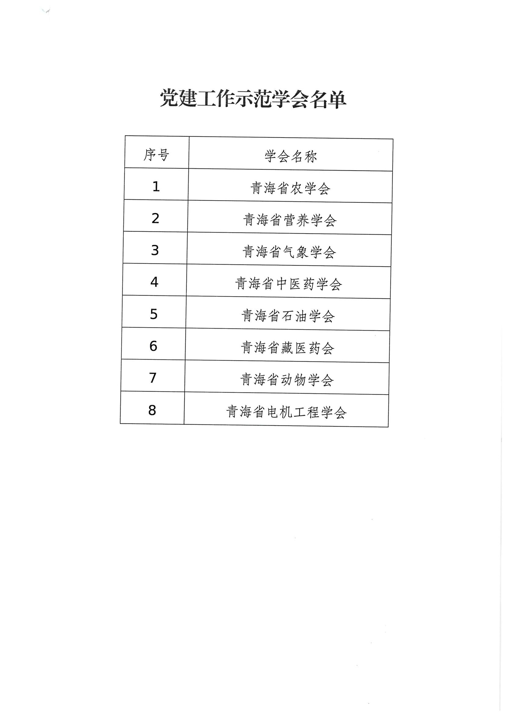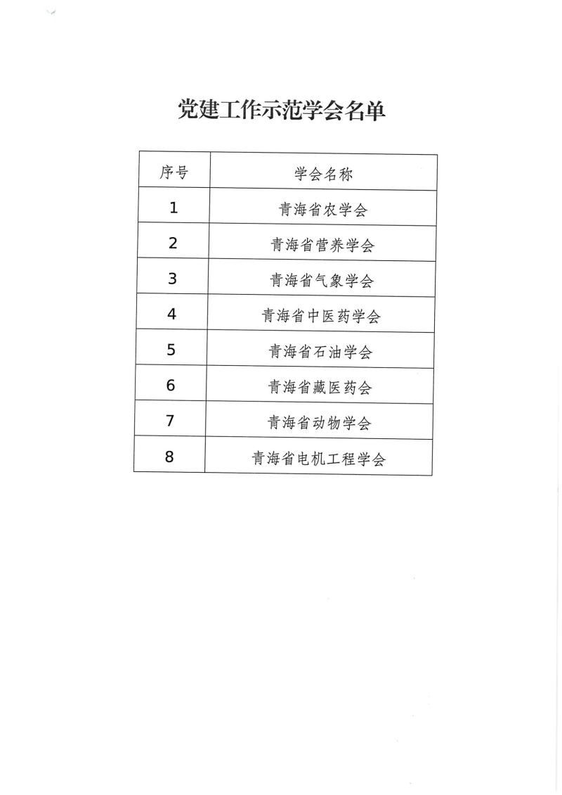 中国共产党青海省科技社团委员会党建工作示范学会评比结果的公示