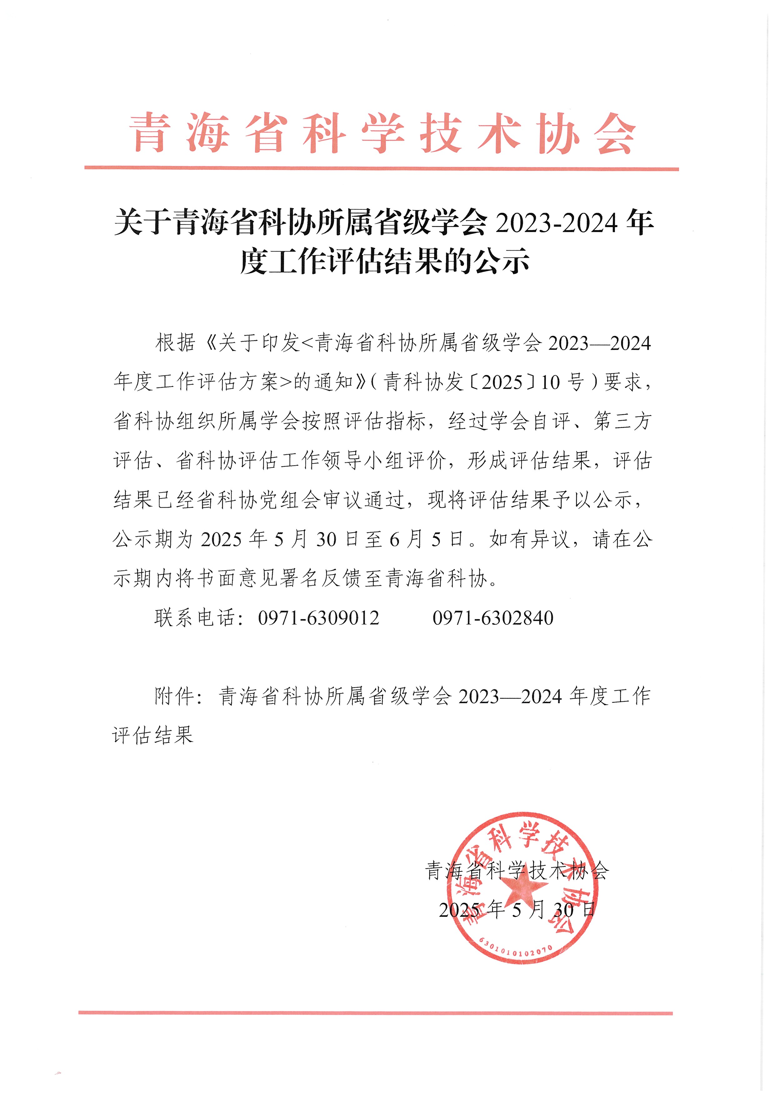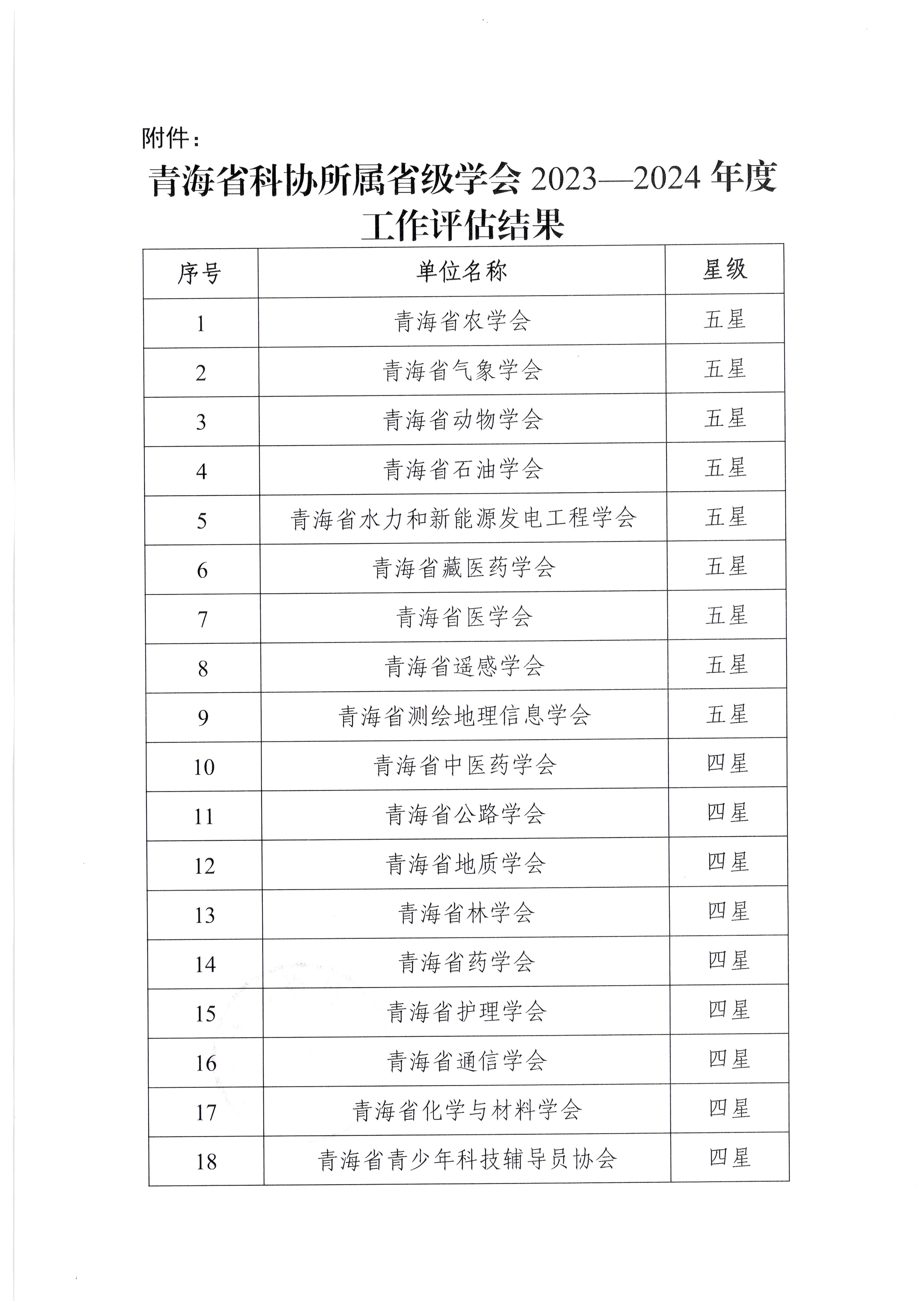 关于青海省科协所属省级学会2023—2024年度工作评估结果的公示