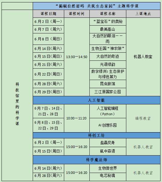 六月,科学大本营“揭秘自然密码 共筑生态家园”主题活动精彩来袭!从自然生态探索到人工智能应用,从趣味编程到创意制作......丰富多样的课程让孩子们在玩中学、学中乐,快来加入这场奇妙之旅吧!