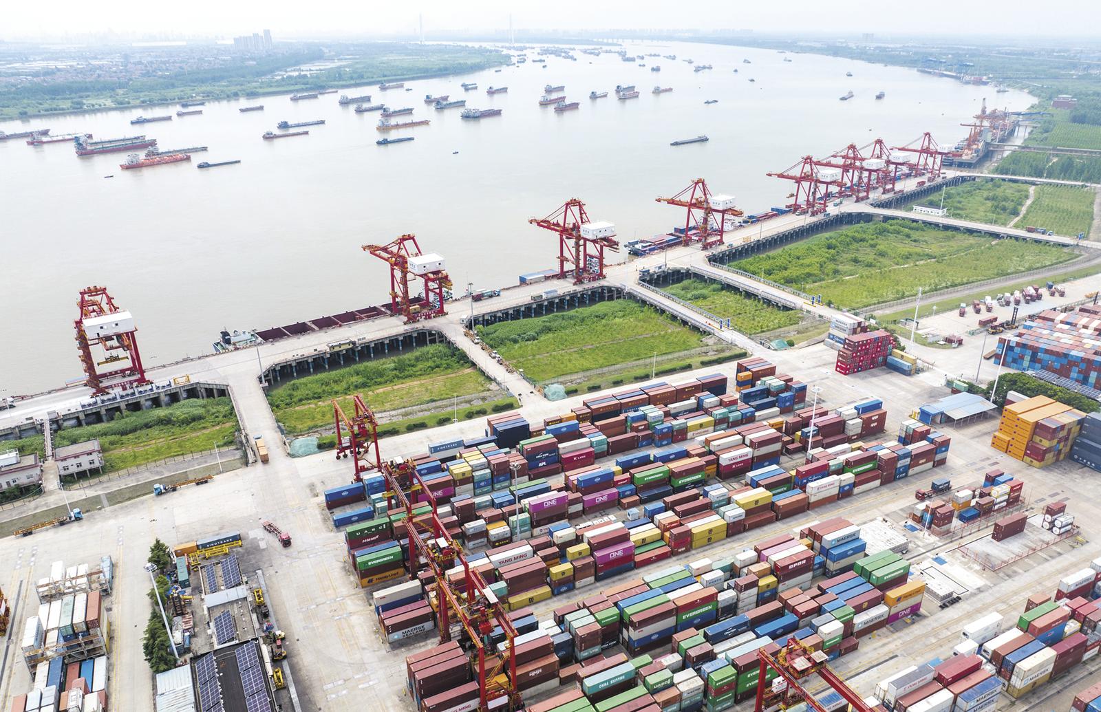 这是2024年6月1日拍摄的武汉阳逻港(无人机照片)。 新华社记者 杜子璇 摄