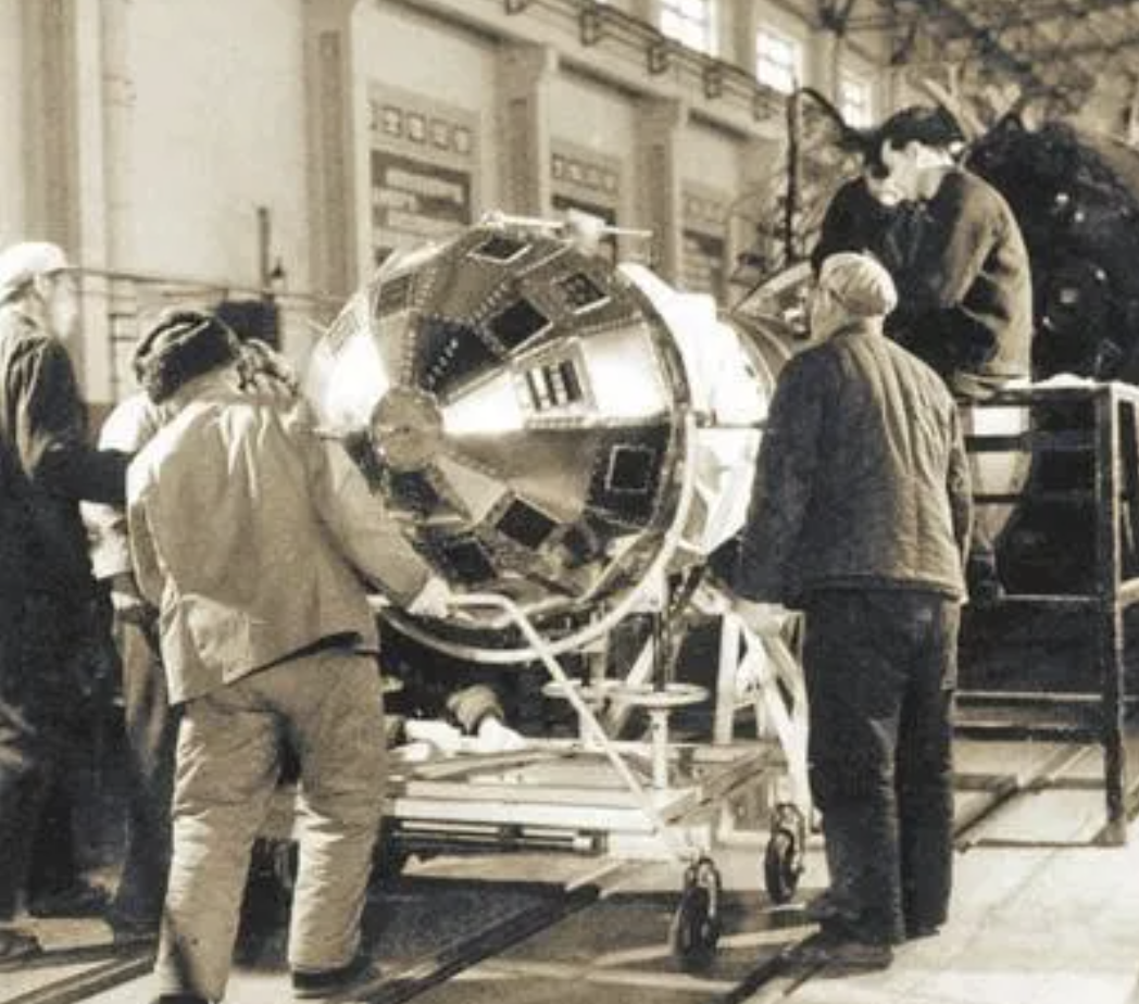 1970年4月24日,中国首颗人造卫星“东方红一号”成功发射。图为1970年初,科研人员在厂房内测试“东方红一号”卫星。